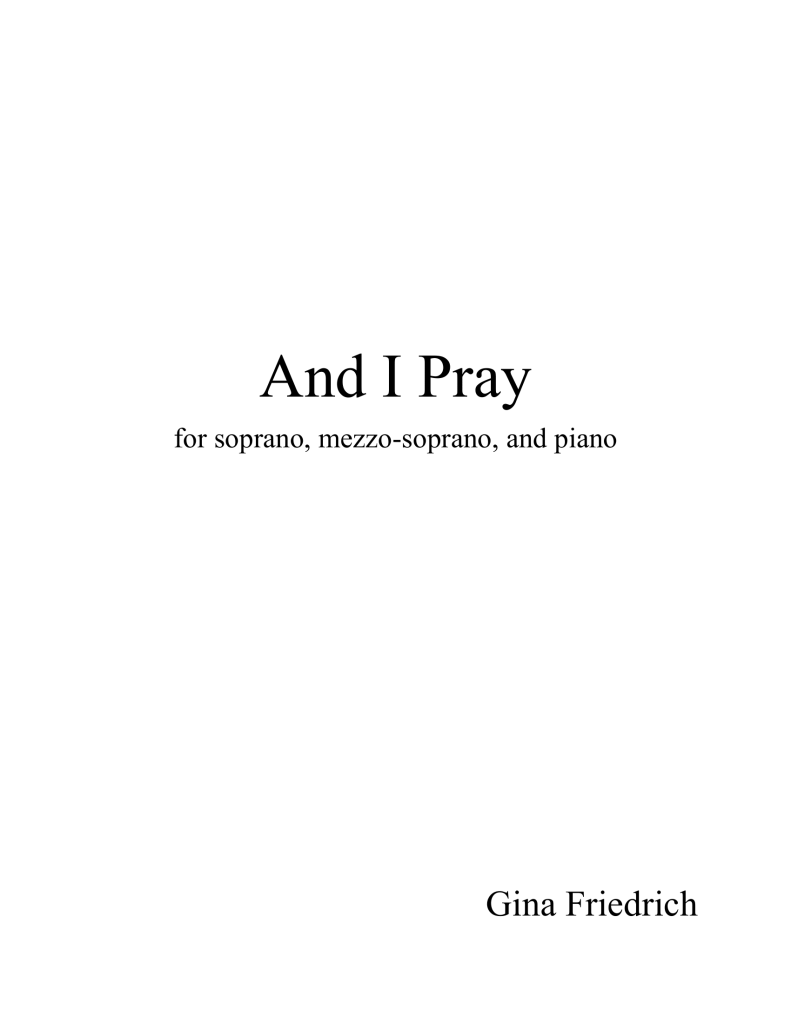 “And I Pray” is a duet for soprano and mezzo-soprano framed around a very simple prayer during hard times—not for strength, courage, or wisdom, but simply for peace. The simplistic, bell-like piano line creates an atmospheric effect, allowing the relationship between the voices to remain at the forefront of the song.